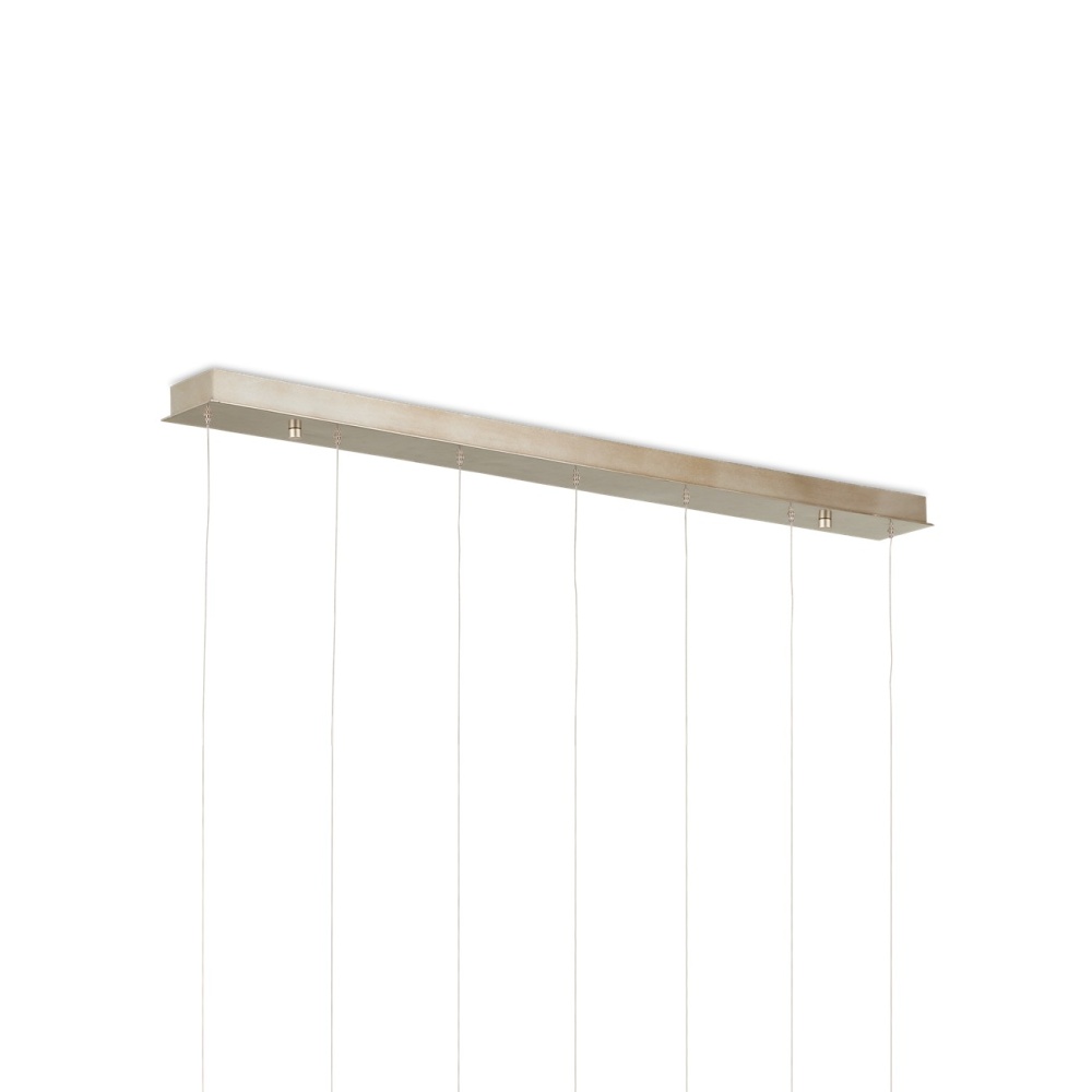 The Pathos Round 7-Light Multi-Drop Pendant dangles shades that are true works of art. The orbs have been doused in reactive glazes that make their special qualities known in the antique gold on the top and matte charcoal on the bottom, which will look different when illumination flows through them. The beads on the top were melted into the molten glass just before it cooled to bring even more effervescence the design. This is definitely a fixture for anyone who appreciates individual elements made by hand. The canopy of this piece is luminous in a painted silver finish. This fixture is among Currey & Company's multi-drop pendant collection, which includes multiple configurations.