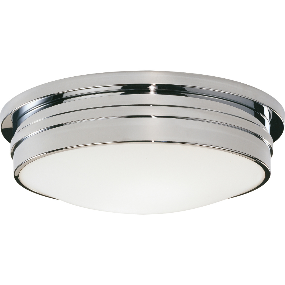 The Roderick collection is sleek with an air of distinction. Frosted glass shades provides bright light that is pleasantly diffused. - Polished Chrome Roderick Flushmount with White Frosted Glass Shade