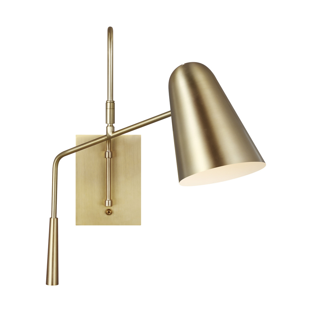 The Simon one light wall sconce in Burnished Brass provides abundant light for your bath vanity, while adding a layer of today's style to your interior design. Simon is a task-oriented wall sconce, with swivel functionality to shine light where you need it. A luxe two-tone finish of Midnight Black with Burnished Brass accents gives a modern update to this vintage-inspired silhouette.