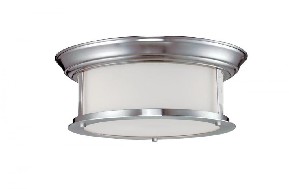 This two light lamp, with a brushed nickel finish and matte opal glass, rests flush to the ceiling and is a perfect fit in todays modern home.